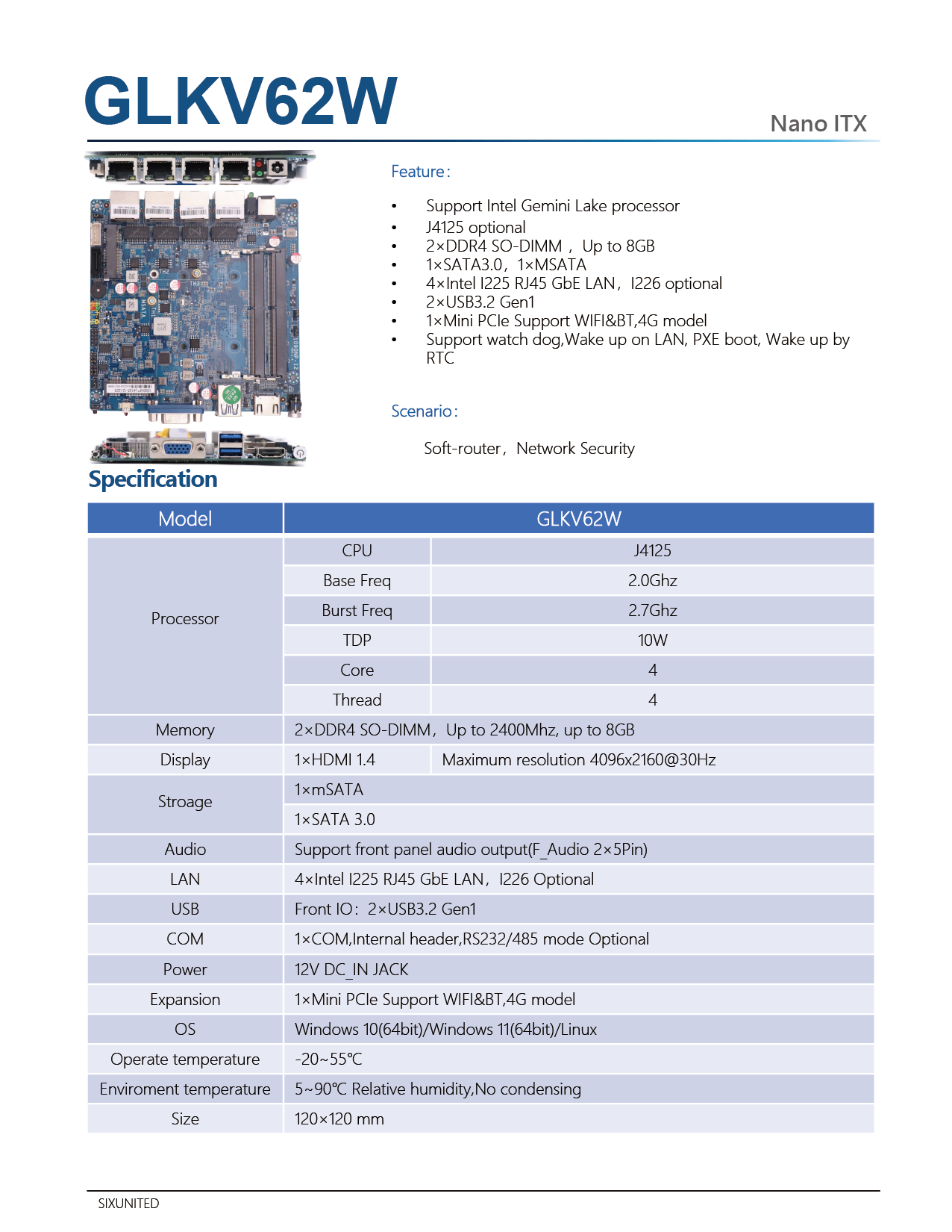 Intel Bay Trail processor Up制看 to 1*USB3.2 Gen1 + 1*USB2.0 1*車著HDMI, 1*VGA 4*RJ45, GLAN support Sc會坐enario: Soft-router,Network Sec自爸urity