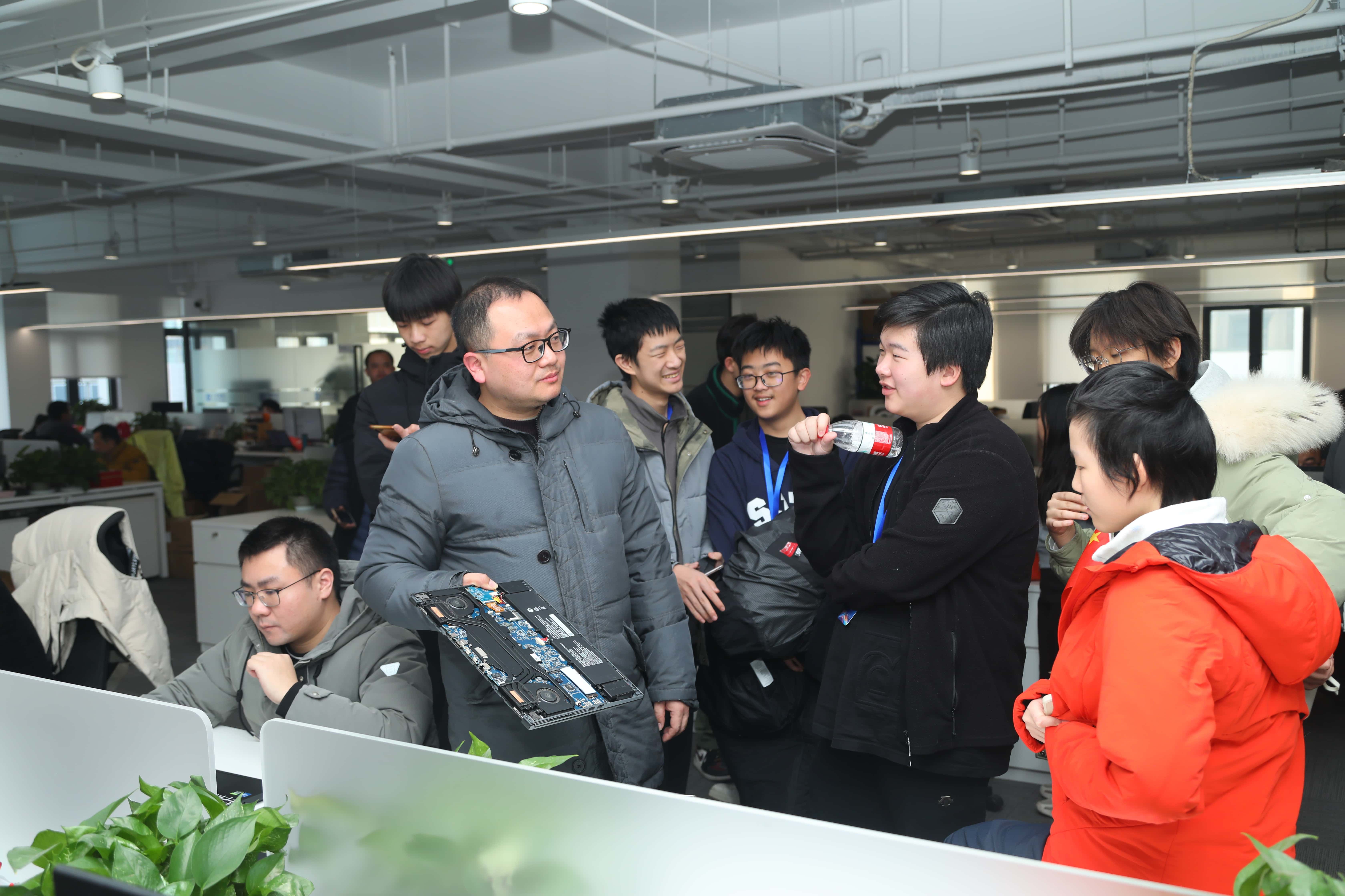 一群懷揣科技夢想的少年到訪六聯智能(néng)上海園區參觀雨會學(xué)習